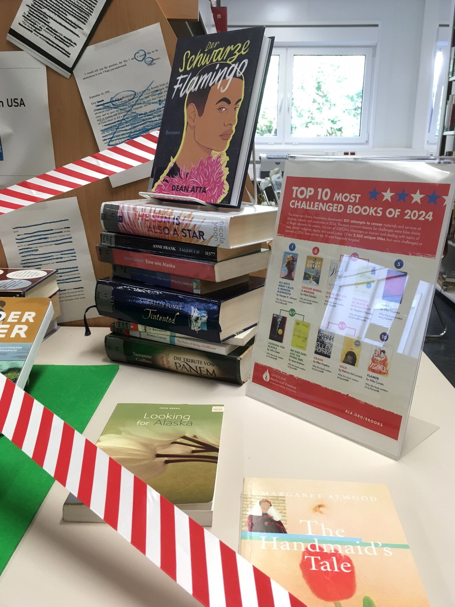 Ihr wollt mehr über Book Banning erfahren oder noch besser: euch eines der Bücher ausleihen? Dann kommt in die Schulbibliothek und besucht den Medientisch!
