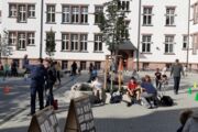 Einige ganz Mutige trauten sich sogar auf Einräder. Der Schulhof glich einem Skatepark!