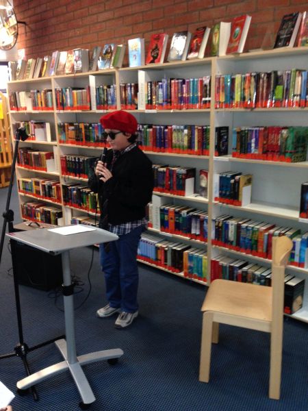 Am Montag, den 28.10.13 fuhren wir (die Klasse 7a) zur Zentralen Kinder- und Jugendbibliothek in Bornheim. Dort begrüßte uns eine sehr nette Bibliothekarin, Frau Schmidt. Sie erklärte uns, wie wir Texte kreativer schreiben und vortragen können. Um es uns zu verdeutlichen, trug sie auch selbst verschiedene Ausschnitte aus Büchern vor. Sie verstellte zum Beispiel ihre Stimme, sodass sie wie ein Mann klang, sprach mal leiser, mal lauter oder machte die passende Gesten zum Text. Hinterher stellte sie uns verschiedene Schreib-Stationen vor, an denen wir selbst kleine Geschichten schreiben sollten. An einer Station sollten wir z.B.Wörter aus einer Salatschüssel „ziehen“ und aus ihnen Geschichten schreiben („Wortsalat“). An einer anderen konnten wir einen Text weiter erzählen („Ketten-Story“). Auf der Homepage der Bibliothek konnten wir auch zwei angefangene Geschichten weiter schreiben („Cliffhanger-Buchshow“). Zum Schluss durften wir unsere Geschichten vortragen, dazu hatten wir die Möglichkeit uns zu verkleiden. Dies war sehr lustig!