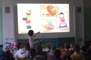 In einer spannenden und anschaulichen Präsentation erhielt die Klasse zunächst Informationen über das Land Japan und das Leben japanischer Kinder. Beispielsweise gehört das gemeinsame Lernen, Essen und auch Putzen der Klassenräume zum Alltag der Kinder. Am 5. Mai wird in Japan alljährlich der Kindertag gefeiert, auf dem Glück und Gesundheit der Kinder im Mittelpunkt stehen. Zum Abschluss der Präsentation wurde über japanische Kinderspiele informiert. Pokemon und Co waren den meisten Kindern bekannt, aber es gab viel mehr zu entdecken.